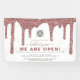 Chic Rose Gold Sparkle Parties scintillant Drips Business Ouverture ou réouverture Banner avec nos gouttes de fausse parties scintillant tendance en or rose/rose et votre nom, nom d'entreprise ou logo. Parfait pour annoncer votre ouverture, réouverture, ou juste pour montrer votre esthétique de luxe. Le luxe est au rendez-vous, votre équipement devrait l'être aussi ! Veuillez nous contacter à cedarandstring@gmail.com si vous avez besoin d'aide pour la conception ou les produits correspondants.