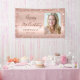 Elégant Moderne Sparkle rose or parties scintillant métal Personnalisé Photo Happy 21st Birthday Party Banner. Cette décoration de fête d'anniversaire féminine adulte avec le texte "Happy 21st Birthday" dans un script de calligraphie écrit à la main et le nom personnalisé et votre photo, date sur rose vif ou rose faux feuille métallique brossé arrière - plan avec cadre de parties scintillant de glam autour. Idéal pour une fête d'anniversaire féminine adulte ou féminine, cela saisit parfaitement l'essence d'une fête d'anniversaire rose moderne en or ou en parties scintillant rose vif. Parfait pour une bannière d'accueil ou même une décoration de fête.