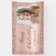 Elégant Moderne Sparkle rose or parties scintillant métal Personnalisé Photo Happy 30th Birthday Party Banner. Cette décoration de fête d'anniversaire féminine adulte avec le texte "Happy 30th Birthday" dans un script de calligraphie écrit à la main et le nom personnalisé et votre photo, date sur rose vif ou rose faux feuille métallique brossé arrière - plan avec cadre de parties scintillant glam lâche autour. Idéal pour une fête d'anniversaire féminine adulte ou féminine, cela saisit parfaitement l'essence d'une fête d'anniversaire rose moderne en or ou en parties scintillant rose vif. Parfait pour une bannière d'accueil ou même une décoration de fête.
