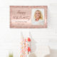 Elégant Moderne Sparkle rose or parties scintillant métal Personnalisé Photo Happy 50th Birthday Party Banner. Cette Fille Adulte feminine CINQUANTE (FIFTIETH) décoration de fête d'anniversaire avec texte "Happy 50th Birthday" dans un script de calligraphie manuscrit élégant et nom personnalisé et votre photo, date sur rose rousse ou rose faux feuille métallique brossé arrière - plan avec cadre de parties scintillant glam lâche autour. Idéal pour une fête d'anniversaire féminine adulte ou féminine, cela saisit parfaitement l'essence d'une fête d'anniversaire rose moderne en or ou en parties scintillant rose vif. Parfait pour une bannière d'accueil ou même une décoration de fête.