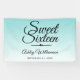 Un design tropical bleu foncé chic Sweet 16 anniversaire bannière de fête. Le bleu vif se fonde sur un arrière - plan blanc. Le texte "Sweet sixteen" en noir est défini dans un script moderne. Élégante bannière de 16ème anniversaire pour un Sweet sixteen glamour, parfait pour elle, la fashionista qui aime motif moderne, luxe et glamour avec un thème tropical plage d'été. Conçu exclusivement pour vous par Happy Dolphin Studio.