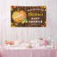 Une bannière rustique de baby shower d'automne parfaite pour un bébé garçon ou une petite fille! Avec un arrière - plan en bois foncé, un citrouille en parties scintillant aux étincelles, des confettis en parties scintillant dorée, des feuilles d'automne, le doux dicton "un petit citrouille est en route". Tout le texte est facile à personnaliser et fera un grand ajout à votre fête.