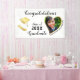 Créez une bannière de graduation blanche, noire et jaune doré unique pour la classe de 2025 avec une photo en forme de coeur, Félicitations dire, et les illustrations de casquette et de diplôme de la grad. S'il vous plaît personnaliser avec le nom et le nom de famille du diplômé, télécharger une photo personnalisée par modèle, et changer un an avant de commander.
