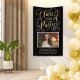 La bannière élégante de la fête de remise des diplômes présente un élégant design "Class of 2023 Party" en faux script de feuille d'or avec de jolis accents de défilement blanc. Personnalisez ce design avec une photo senior du diplômé, et utilisez l'élégant texte personnalisé pour leur nom et l'école. Notez que la couleur noire de l'arrière - plan peut être modifiée pour être coordonnée avec les couleurs de l'école ou de la fête.