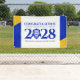 Collèges, universités, lycées et instituts d'enseignement supérieur peuvent ajouter de la sophistication aux cérémonies de remise des diplômes avec cette bannière moderne et contemporaine, qui présente des lettres élégantes sur le bleu royal, l'or et les arrière - plans blancs. Customisez avec un message de félicitations, l'année de remise des diplômes, le nom de l'école, du collège ou de l'université, le logo et/ou le slogan de l'université. Les couleurs et les types de police peuvent être modifiés selon vos besoins. Design © W.H. Sim, Tous droits réservés. Voir plus sur zazzle.com/expressionsoccasions