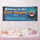 Accueillez vos voisins, famille et amis à votre propre Chambre d'amusement de Halloween. Featured est une grimacerie, un mal, un fou, et clown effrayant. Le signe de bannière de Halloween est parfait pour montrer dans votre cour ou votre partie ou danse de Halloween. Customisez cette bannière avec votre propre message textuel.