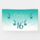 De mignons nombres de parties scintillant turquoise et le coeur sur ombre turquoise et blanc arrière - plan. 16 ans. Monogramme personnalisé