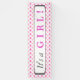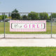 Beaucoup de coeurs en rose foncé et clair et sur un arrière - plan blanc couvrent l'arrière - plan de cette bannière de faire-part bébé. Le champ de bannière blanche au milieu est revêtu de gris, et annonce qu'il s'agit d'une FILLE en gris et rose. Faites savoir à tout le quartier !
