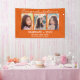 Cette bannière de graduation personnalisée pour célébrer votre diplômé présente un montage photo de trois photos sur un arrière - plan orange. Ci-dessus en blanc il dit "Félicitations" et ci-dessous "Graduate 2023" avec votre nom et l'école à personnaliser. Conçu par l'artiste Susan Coffey.