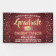 Ajoutez une touche personnalisée aux décorations de la fête de fin d'études supérieures ou secondaires avec cette bannière bordeaux, or et blanc personnalisée. Tout le texte est simple à customiser pour inclure le nom, l'année de classe, l'école, le diplôme, les distinctions honorifiques, la citation inspirante ou tout autre texte de votre choix. Le design comprend un arrière - plan en acier inoxydable brossé en faux marron rouge, un casquette en carton de faux papier, des points de confetti festifs, une typographie moderne élégante et une calligraphie manuscrite. Veuillez noter que l'or est imprimé en couleur et non en métal. Ce signe de fête est une façon élégante de célébrer la journée spéciale. Félicitations au diplômé !