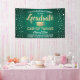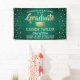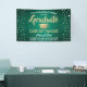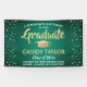 Ajoutez une touche personnalisée aux décorations de la fête de fin d'études supérieures ou secondaires avec cette bannière personnalisée verte, or et blanche. Tout le texte est simple à customiser pour inclure le nom, l'année de classe, l'école, le diplôme, les distinctions honorifiques, la citation inspirante ou tout autre texte de votre choix. Le design comprend un arrière - plan en acier inoxydable brossé vert, un casquette en carton de faux papier, des points de confetti festifs, une typographie moderne élégante et une calligraphie manuscrite. Veuillez noter que l'or est imprimé en couleur et non en métal. Ce signe de fête est une façon élégante de célébrer la journée spéciale. Félicitations au diplômé !