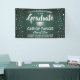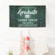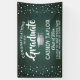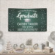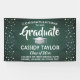 Ajoutez une touche personnalisée aux décorations de la fête de fin d'études supérieures ou secondaires avec cette bannière personnalisée vert foncé, blanc et argent. Tout le texte est simple à customiser pour inclure le nom, l'année de classe, l'école, le diplôme, les distinctions honorifiques, la citation inspirante ou tout autre texte de votre choix. Le design comprend un arrière - plan brossé vert, un casquette en carton de mortier en acier inoxydable, des points de confetti gris et blanc festifs, une typographie moderne élégante et une calligraphie manuscrite. Veuillez noter que l'argent est imprimé en couleur et non en papier métallique. Ce signe de fête est une façon élégante de célébrer la journée spéciale. Félicitations au diplômé !