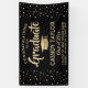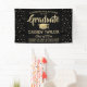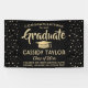 Ajoutez une touche personnalisée aux décorations de la fête de fin d'études supérieures ou secondaires avec cette bannière personnalisée en noir et or. Tout le texte est simple à customiser pour inclure le nom, l'année de classe, l'école, le diplôme, les distinctions honorifiques, la citation inspirante ou tout autre texte de votre choix. Le design est composé d'un casquette de planche de mortier en faux papier, de confettis de parties scintillant en faux or, d'une typographie moderne élégante et d'une calligraphie manuscrite. Veuillez noter que l'or est imprimé en couleur et non en métal. Ce signe de fête est une façon élégante de célébrer la journée spéciale. Félicitations au diplômé !