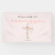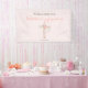 Bannière de confirmation moderne avec croix florale sur un arrière - plan rose vif et un élégant script écrit à la main. Personnalisez avec nom, texte et date.