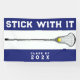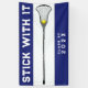 Bannière de l'équipe de crosse pour filles créatives avec citation encourageante et conception de bâton laxiste sur arrière - plan bleu. Modifier le texte pour ajouter l'année de graduation.