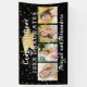 Célébrez les deux diplômés à une double fête de graduation (ou quatre diplômés partageant une fête) avec ce panneau personnalisé de couleur bannière (en noir) avec 4 photos (2 de chaque grade) et le titre GRATULATIONS DIPLÔMÉS ANNÉES dans un script moderne, blanc lettré brush typographie idéal pour homme ou femme et personnalisé avec leurs noms. Le design comprend un capuchon de graduation en feuille d'or métallique ou un mortier et des confettis en or. MODIFICATIONS : Vous pouvez modifier la couleur de l'arrière - plan en une couleur d'école ou en coordonnant la couleur du thème de la partie ainsi que le style, la taille, la couleur ou le placement de la police de texte. Idéal pour une fête de remise de diplômes de groupe. ASSISTANCE : Pour obtenir de l'aide sur la modification ou la personnalisation de la conception, le changement de couleur, le redimensionnement ou le transfert de la conception à un autre produit, contactez le concepteur AVANT DE COMMANDER via l'onglet MESSAGE Conversation Zazzle ou envoyez un courriel à makeitaboutyoustore@gmail.com.