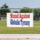 Banderole de promotion pour ceux qui ne veulent pas abandonner leur liberté au mondialisme. Disponible en design intérieur et extérieur.