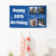Cette bannière de collage photo cool moderne s'ajoutera à vos décorations de fête, avec un arrière - plan bleu, 4 de vos photos préférées, et personnalisée en ajoutant votre âge et votre nom.