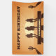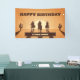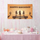 silhouettes de cowboys wild west au coucher du soleil bandeau d'anniversaire avec le nom à personnaliser. Amusez-vous avec un ensemble coordonné de spaghettis à l'occidentale avec plus de décoration de fête et des cadeaux de fête qui ont le même look et les couleurs orange.