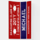 © Socialite Designs Inc. Célébrez le diplômé en style! Faites de votre fête de remise de diplômes une fête inoubliable avec cette bannière de graduation personnalisée rouge et bleu. Avec ses couleurs audacieuses et son texte personnalisable, cette bannière est la meilleure façon d'honorer votre diplômé. Que ce soit pour une fête au lycée ou à l'université, ce design accrocheur ajoute une touche festive à tout lieu. Ajoutez simplement le nom, l'école ou le message spécial du diplômé pour créer un souvenir unique pour le grand jour !