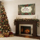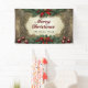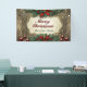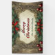 Cette bannière encadre magistralement votre message de vacances dans un cadre de travail en bois doré antique. Autour de l'élégant cadre est une luxuriante couronne de feuilles sacrés vert profond et de baies rouges rubis, entaillées de pointes de satin rouge en haut et en bas pour une symétrie parfaite. Le message "Joyeux Noël" brille dans un rouge et vert gras et calligraphique. Personnalisez facilement la ligne inférieure avec votre nom de famille ou texte personnalisé. Six ornements épars de couleur pourpre profonde ajoutent une touche finale de glamour vintage, ce qui en fait le point de mire idéal et inoubliable pour votre décor.