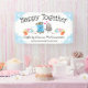 Cute butin homme de fil avec aiguille à coudre et femme en charrette dans l'amour sur ce artisanat montrer bannière d'affichage de stand pour un mur ou suspendu à une table, parfait pour une couturière, quilter ou quilted artisanat.