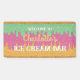 Personnalisez cette bannière de glace au sorbet arc-en-ciel avec votre propre dicton. Il y a trois lignes que vous pouvez modifier ou personnaliser pour changer les lignes et la police. À l'intérieur de l'œuvre d'art, il y a deux autres couleurs de gaufres ou vous pouvez agrandir ou réduire le motif sur la bannière. Cette bannière comporte un fond de glace au sorbet arc-en-ciel avec des paillettes et des bords de cône de gaufre en feston. Cette bannière de glace est idéale pour votre fête d'anniversaire ou une douche de mariée.
