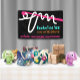 Poignée de fil bouchée enroulée autour d'un crochet sur cette cabine de spectacle artisanale ou bannière d'affichage de table, personnalisée avec votre choix de polices et de texte et de schéma de couleurs.