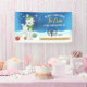 Agneau mignon ou mouton avec un arc, boules de fil, et en bonneterie casquette sur ce Noël artisanal de vacances montre bannière pour les tricots, tricots ou projets de crochet, fils à la maison ou d'autres artisanat confortable, personnalisée avec votre texte et logo, plus votre choix de schéma de couleurs.