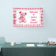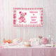 Pink and white crocheted teddy bear girl's baby shower personalized welcome banner. An adorable pink teddy bear crocheted with pink and white yarn adds the sweetest touch.