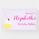 Cupcake baking birthday party for kids. Features a cupcake decorated with colorful sprinkles with a cherry on top