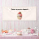 Bannière d'anniversaire avec une illustration délicieuse représentant un cupcake à l'allure délicieuse. Crème blanche et une grande fraise ornent cette délicieuse douceur délicieuse.