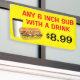 En circulant et en attendant les lumières, je vais regarder les différentes bannières des magasins et une constante que je vois presque toujours est que je ne peux pas faire le texte sur les bannières des sous-magasins ou des beignes, j'essaie de faire des designs qui se démarquent et peuvent être vus de loin pour que les clients puissent mieux observer votre produit et votre prix. Je ferai également cette Personnaliser N'importe quel 6 pouces avec un verre Ajouter Prix Banner design dans différentes tailles et sur les affiches et les clins de fenêtre pour attraper les attractions pour vos clients.