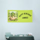 Create a fun and cheerful party with this adorable baby Dinosaur jungle banner! Featuring a smiling hatchling Dinosaur surrounded by lush greenery, this design brings a playful prehistoric vibe to a child's birthday party! It has a curved "Happy Birthday" wish and a place for a name -- both of which can be customized. They can say whatver you wish to change them to!