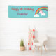 Faites une fête magique avec cette jolie bannière de fête d'anniversaire à la licorne dans le cadre des décorations de fête! Cette bannière colorée de fête d'anniversaire a une mignonne licorne avec crinière et queue en coton rose. Il vole parmi l'arc-en-ciel, le nuage et les étoiles avec ses petites ailes. Un merveilleux thème magique d'imaginaire pour la fête d'anniversaire des filles! Personnalisez facilement avec votre message de fête.