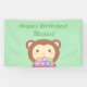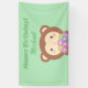 Cute Kawaii Singe et Fleurs Bonne Bannière d'anniversaire