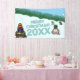 Cute penguins on a Christmas party banner. Use "Personalize this template" to change the "Merry Christmas! 20xx" text & year and create a unique, customized party accessory. Featuring four cheeky penguins having a snowball fight, wrapped up for the snow in Christmas jumpers, scarves and woolly hats. One hitting another with a snowball, another wearing all the warm knitted Xmas clothes available, and a fourth wearing a balaclava and sitting on snowballs as if they're eggs. A playful item for Christmas, winter, or penguin fans.