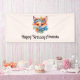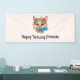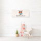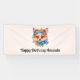 Bannière d'anniversaire avec illustration d'un adorable portrait de renard avec couronne et collier bleu et orange.
