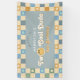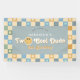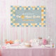 This groovy boys 2nd birthday welcome banner captures retro 70s vibes with a cute blue and yellow smile theme, and a pastel chequered pattern. It includes space to add your bits name in a fun script. Perfect for a "Two Cool" boho birthday.