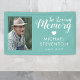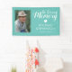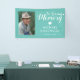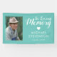 Banderole funéraire commémorative avec un arrière - plan turquoise qui peut être changée en n'importe quelle couleur, une photo de votre être cher perdu, et un modèle "en mémoire d'amour" facile à personnaliser.