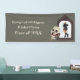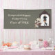 Ajoutez une sombre esthétique académique à votre fête de remise de diplômes ou à tout autre événement spécial avec cette bannière personnalisable. Il présente une illustration d'un crâne, une bougie dans un chandelier, des livres anciens et un cadre orné dressé contre un arrière - plan gris-vert foncé. Votre photo apparaît à l'intérieur du cadre orné.