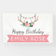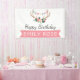 Mise en scène de fête sucrée pour un adorable anniversaire ! Des bois de cerf accentués de roses et une guirlande de fête festive créent un thème propre, moderne et chic pour tout âge.