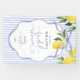 Célébrez la future mariée avec style grâce à cette collection moderne et élégante de shower de mariage Stripe Citrus, mettant en vedette des rayures classiques, un délicat cadre en forme de nœud à l'aquarelle et de fraîches illustrations de citrons peintes à la main pour un parfait touche d'élégance. Ces designs sophistiqués et intemporels sont idéaux pour un brunch de mariage, une garden-party italienne ou une soirée d'été, mêlant le charme chic du Sud à une esthétique moderne luxueuse. Ce thème de shower de mariage sur le citron donnera le ton à une célébration élégante et inoubliable ! Voir la collection entière pour plus d'articles assortis !