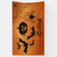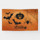 Design d'Halloween avec citrouille noir mal, chauves-souris et araignée sur un arrière - plan orange
