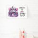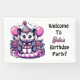 Sympa posum rose avec la bannière d'anniversaire personnalisée d'une petite fille au jeu de mots. Un joli possum dans un casquette d'anniversaire, avec des cadeaux et des ballons célébrant un anniversaire.