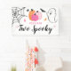 Deux Éffrayants ! Bannière de fête d'Halloween 2ème anniversaire. Banderole d'anniversaire Spooktaculaire avec citrouilles roses, étoiles et araignées.