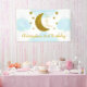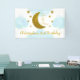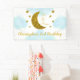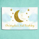 Deux la lune ! 2ème anniversaire avec lune d'or et étoiles avec arrière - plan d'aquarelle bleue