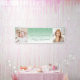 Bienvenue aux invités avec cette bannière photo chic et glamour de 30e anniversaire, avec une bordure étincelante verte fausse parties scintillant et vert ombre arrière - plan. Remplacez facilement les deux exemples d'images par des photos de l'invité d'honneur. Personnalisez-le avec son nom en écriture manuscrite verte sous les mots "Joyeux 30e anniversaire" dans sans serif font—ou modifiez à n'importe quelle année d'anniversaire.