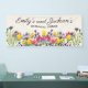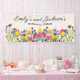 Bannière de répétition fleur sauvage couleur rose, violet, jaune et rouge avec les noms de la mariée et du futur marié.