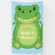 Design de baby shower de dino mignon avec un adorable dessin de dinosaure t-rex ! Idéal pour un bébé garçon en route en bleu !